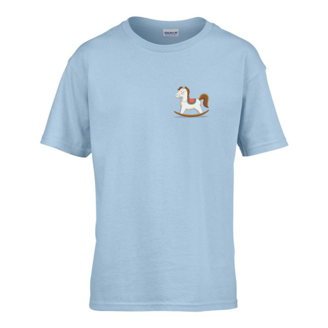 ZSONA DEKOR Gyerek póló Ovis jelel Hintaló mintával Világos kék 134 méret