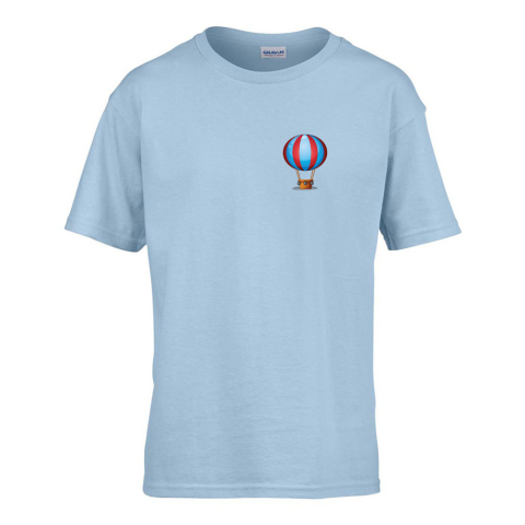 1 kép ZSONA DEKOR Gyerek póló Ovis jelel Hőlégballon mintával Világos kék 122 méret