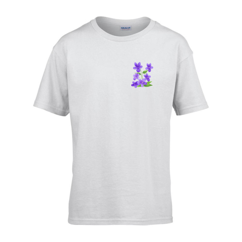 1 kép ZSONA DEKOR Gyerek póló Ovis jelel Ibolya mintával Fehér 134 méret