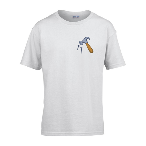 1 kép ZSONA DEKOR Gyerek póló Ovis jelel Kalapács mintával Fehér 122 méret