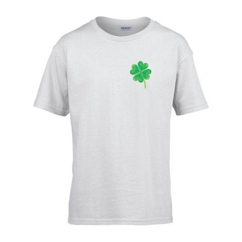 1 kép ZSONA DEKOR Gyerek póló Ovis jelel Lóhere mintával Fehér 134 méret