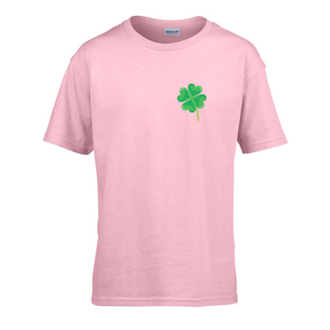 1 kép ZSONA DEKOR Gyerek póló Ovis jelel Lóhere mintával Rózsaszín 146 méret