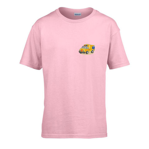 1 kép ZSONA DEKOR Gyerek póló Ovis jelel Mentő autó mintával Rózsaszín 134 méret