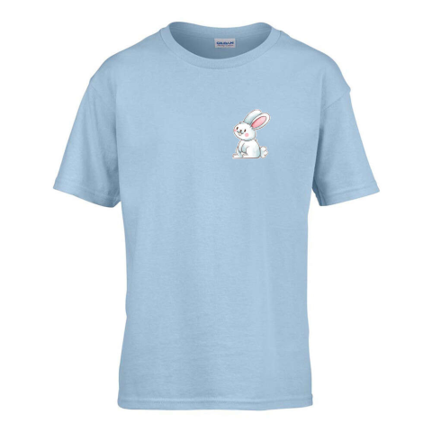 1 kép ZSONA DEKOR Gyerek póló Ovis jelel Nyuszi mintával Világos kék 110 méret