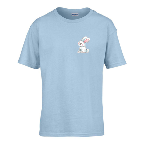 1 kép ZSONA DEKOR Gyerek póló Ovis jelel Nyuszi mintával Világos kék 122 méret