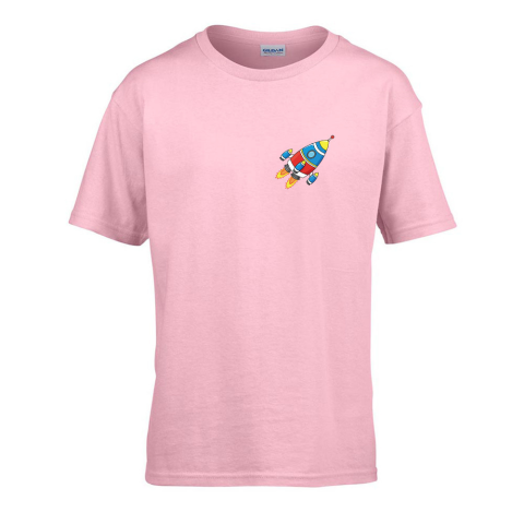 1 kép ZSONA DEKOR Gyerek póló Ovis jelel Rakéta mintával Rózsaszín 122 méret