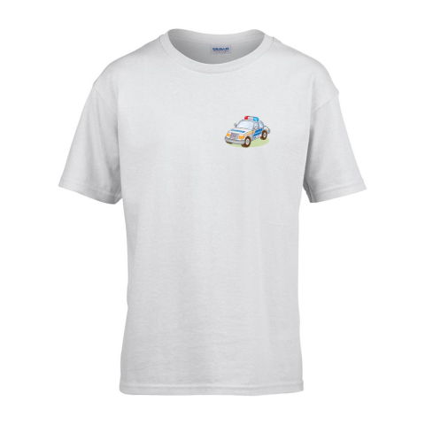 1 kép ZSONA DEKOR Gyerek póló Ovis jelel Rendőrautó mintával Fehér 134 méret