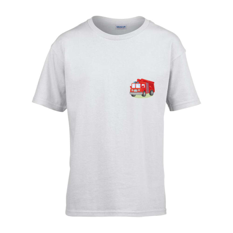 1 kép ZSONA DEKOR Gyerek póló Ovis jelel Tűzoltóautó mintával Fehér 110 méret