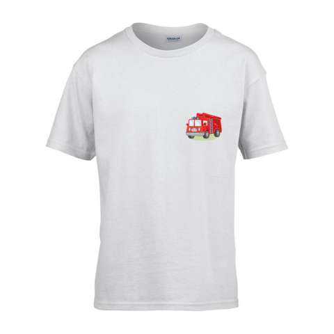 1 kép ZSONA DEKOR Gyerek póló Ovis jelel Tűzoltóautó mintával Fehér 134 méret