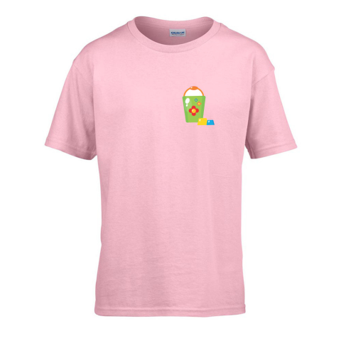 1 kép ZSONA DEKOR Gyerek póló Ovis jelel Vödör mintával Rózsaszín 134 méret