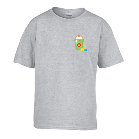 1 kép ZSONA DEKOR Gyerek póló Ovis jelel Vödör mintával Szürke 134 méret