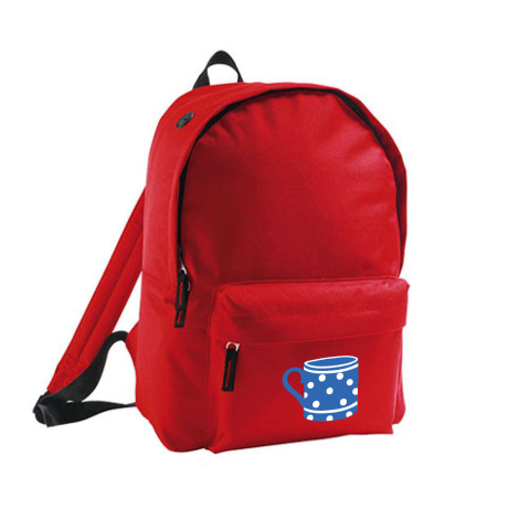 1 kép ZSONA DEKOR Hátizsák Ovis jellel Kék pöttyös bögre mintával piros