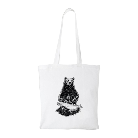 1 kép ZSONA DEKOR Horgász és a medve - Bevásárló táska fehér