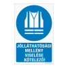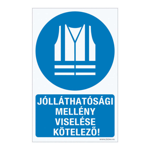 ZSONA DEKOR Jólláthatósági mellény viselése kötelező! Öntapadós matrica 160x100 mm információs címke 1 kép