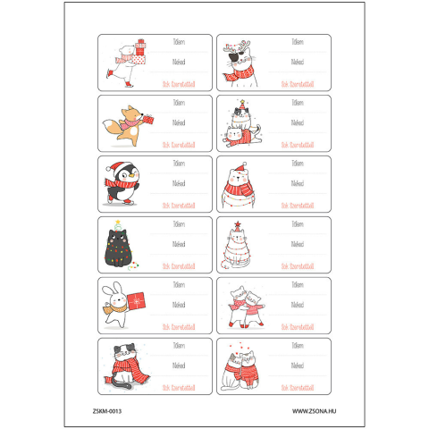 Karácsonyi ajándékkísérő matricák vidám, ünnepi grafikáikkal. A 8×4 cm-es matricákon Tőlem és Neked mezők segítik a könnyű feliratozást. A karácsonyi ajándékkísérő matricák vidám, ünnepi grafikáikkal még személyesebbé teszik az ajándékozást. Egy íven