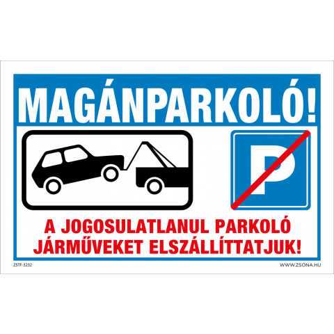 1 kép ZSONA DEKOR Magánparkoló! Műanyag tábla 160x250 mm