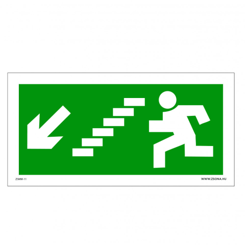ZSONA DEKOR Menekülési út balra, lépcsőn le Utánvilágító műanyag tábla 200x100 mm