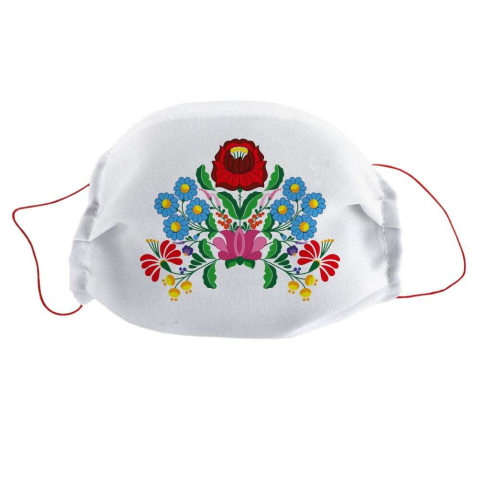 1 kép ZSONA DEKOR Mosható textil szájmaszk fehér kalocsai mintával gyerek méret
