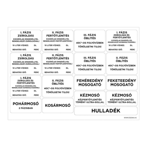 Tedd fel kérdésed a(z) ZSONA DEKOR Mosogatási fázisok köjálos HACCP ÁNTSZ jelölései matrica csomag termékről!
