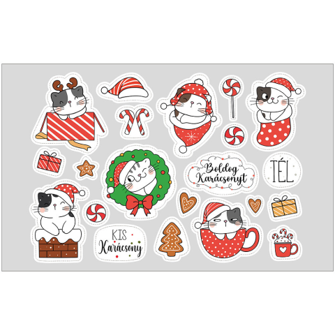 1 kép ZSONA DEKOR Öntapadós karácsonyi-cica matrica csomag