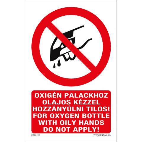1 kép ZSONA DEKOR Oxigén palackhoz olajos kézzel hozzányúlni tilos! Műanyag tábla 160x100 mm