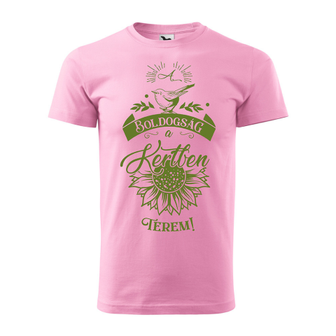 1 kép ZSONA DEKOR Póló A boldogság a kertben terem! mintával - Rózsaszín XL méretben