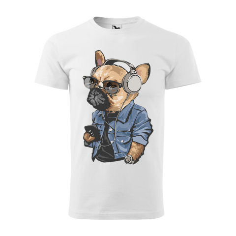 1 kép ZSONA DEKOR Póló Francia bulldog zenét hallgat mintával - Fehér XXXL méretben