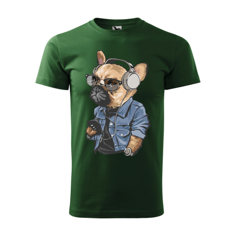 1 kép ZSONA DEKOR Póló Francia bulldog zenét hallgat mintával - Zöld M méretben
