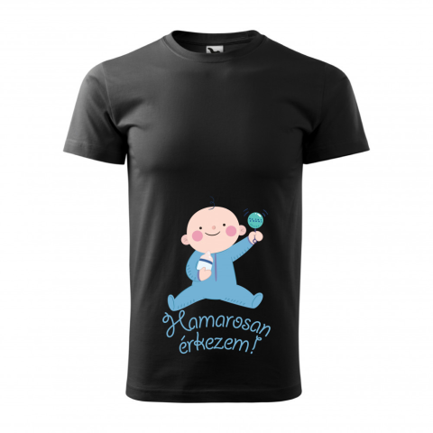 1 kép ZSONA DEKOR Póló Hamarosan érkezem fiú mintával - Fekete S méretben