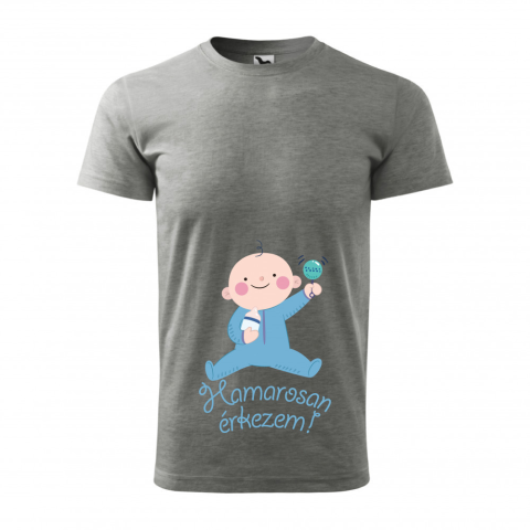 ZSONA DEKOR Póló Hamarosan érkezem fiú mintával - Szürke L méretben egyedi ajándék 1 kép