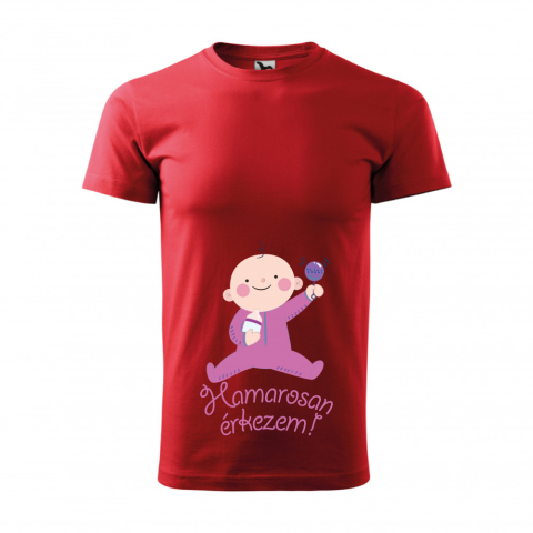 1 kép ZSONA DEKOR Póló Hamarosan érkezem lány mintával - Piros S méretben