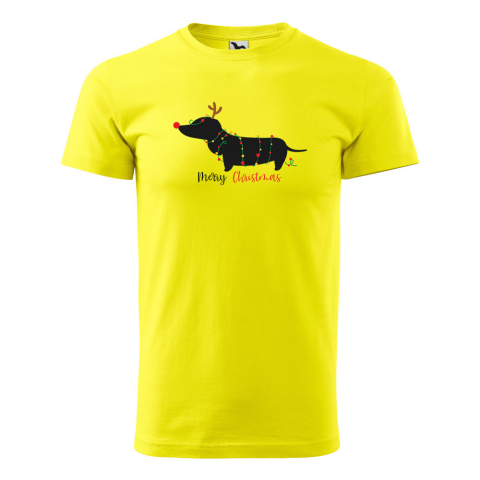 1 kép ZSONA DEKOR Póló Merry Christmas tacskó mintával - Sárga M méretben