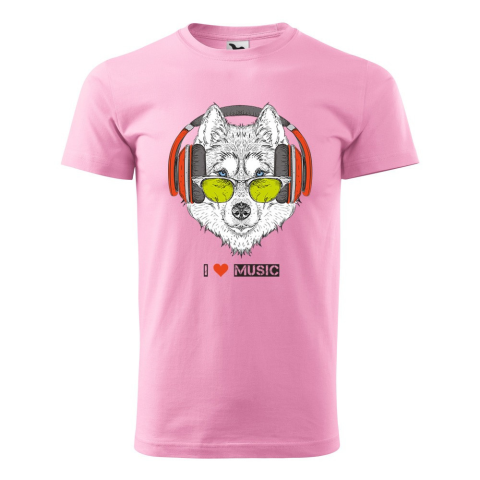 1 kép ZSONA DEKOR Póló Zenét hallgató farkas mintával - Rózsaszín XL méretben