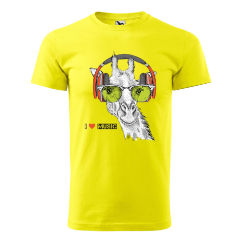 1 kép ZSONA DEKOR Póló Zenét hallgató zsiráf mintával - Sárga S méretben