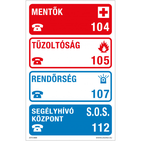 1 kép ZSONA DEKOR Segélykérő telefonszámok Öntapadós matrica 160x250 mm