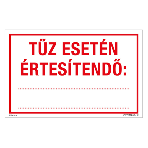 1 kép ZSONA DEKOR Tűz esetén értesítendő Műanyag tábla 320x500 mm
