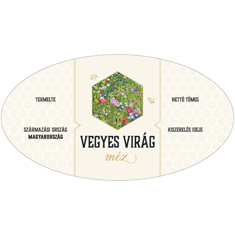 A mézes címke tiszta, jól áttekinthető megjelenést biztosít bármely mézfajtának. A virágmotívumok és a méz fajtájának feltüntetése segíti a vásárlót a könnyebb tájékozódásban. Tartós, könnyen felhelyezhető és egységes, rendezett arculatot ad a termékn