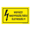 ZSONA DEKOR Vigyázz! Nagyfeszültség! Életveszély! Műanyag tábla 160x100 mm információs címke 1 kép