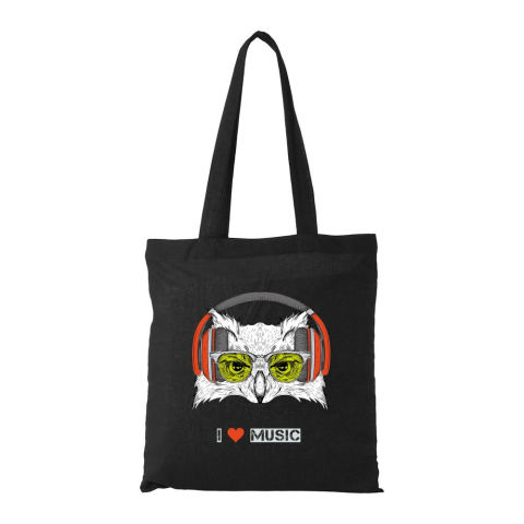 1 kép ZSONA DEKOR Zenét hallgató bagoly - Bevásárló táska fekete