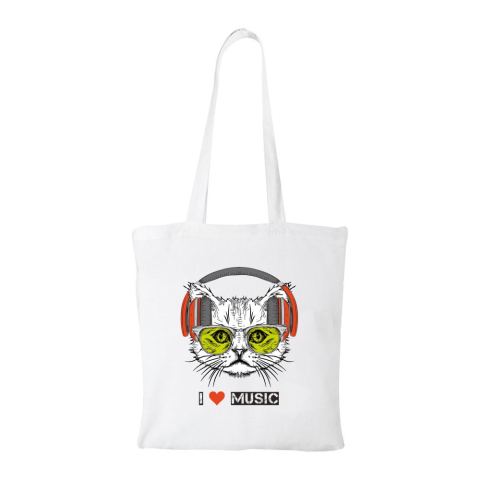 1 kép ZSONA DEKOR Zenét hallgató cica - Bevásárló táska fehér