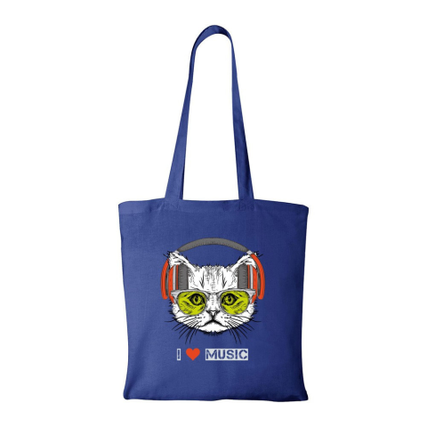1 kép ZSONA DEKOR Zenét hallgató cica - Bevásárló táska kék