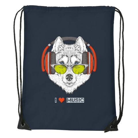 1 kép ZSONA DEKOR Zenét hallgató farkas - Sport táska navy kék