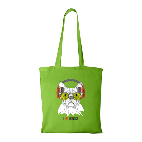 1 kép ZSONA DEKOR Zenét hallgató kutya - Bevásárló táska zöld