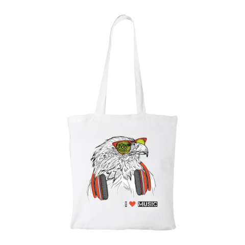 1 kép ZSONA DEKOR Zenét hallgató sas - Bevásárló táska fehér
