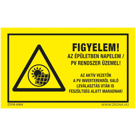 1 kép Zsona Figyelem! Az épületben napelem PV rendszer üzemel! Műanyag tábla 250x160 mm