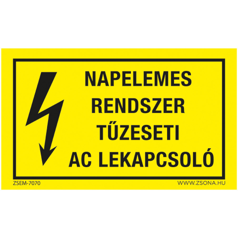1 kép Zsona Napelemes rendszer tűzeseti AC lekapcsoló Öntapadós matrica 160x250 mm
