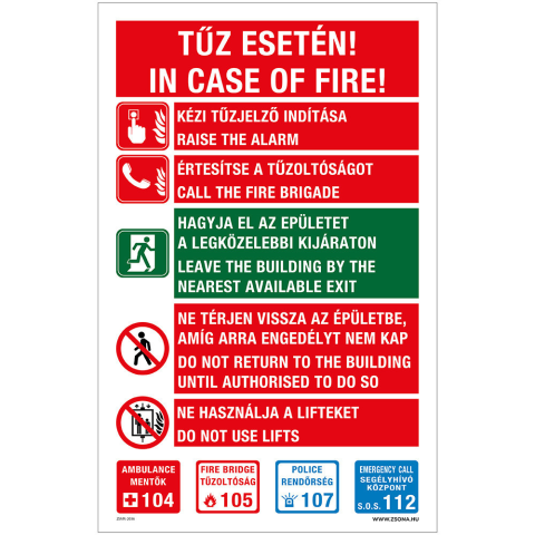 Zsona Tűz esetén teendő Alumínium tábla 160x250 mm információs címke 1 kép