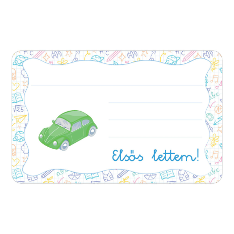 1 kép Zsona Zöld autó ovis jellel öntapadós füzet cimke