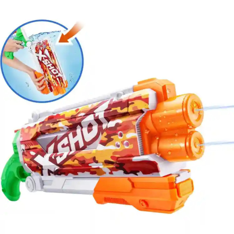 Az X-Shot Skins Fast-Fill vízipisztoly puska tökéletes szabadtéri játék gyerekeknek és felnőtteknek egyaránt. A fegyver átlagos lőtávolsága 10 méter. A fegyver töltőnyílását kinyitva, majd a fegyvert vízbe merítve 1 másodperc alatt fel lehet tölteni a tar