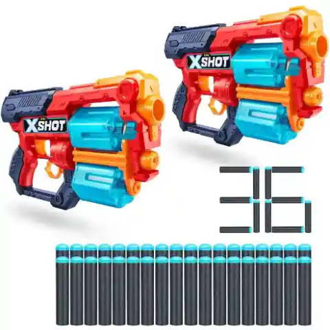 Az X-Shot Xcess 2db játékfegyver extrém lövő erővel és hajszálpontos lövéssel tökéletes eszköz a szabadtéri harci játékokhoz. Akár 27 méteres lőtávolság. A fegyverenkénti 2-2 forgótárakba egyszerre 6-6 lövedéket lehet betölteni, majd a fegyver hátuljá